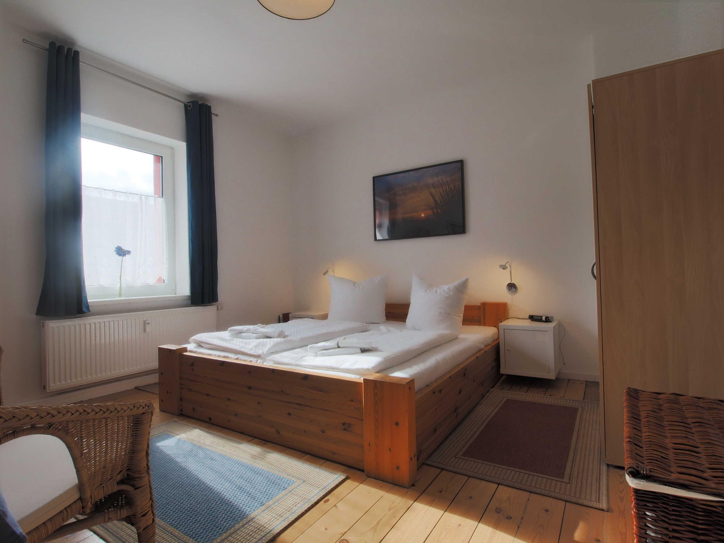 Die Ferienwohnung „Fewo Heimathafen“ bietet auf 62 m² Platz für bis zu 4 Personen und ist der perfekte Rückzugsort für Paare, Familien oder Freunde, die Erholung und Küstenflair suchen. Die Wohnung befindet sich im Hochparterre eines gepflegten Hauses und besticht durch ein helles, freundliches Ambiente. Das Wohnzimmer ist mit einem bequemen Sofa und einem Fernseher ausgestattet und lädt zu entspannten Abenden ein. Die zwei Schlafzimmer sorgen für erholsamen Schlaf: ein Zimmer mit Doppelbett und ein weiteres mit zwei Einzelbetten – ein Kinderreisebett (ohne Wäsche) steht ebenfalls bereit.