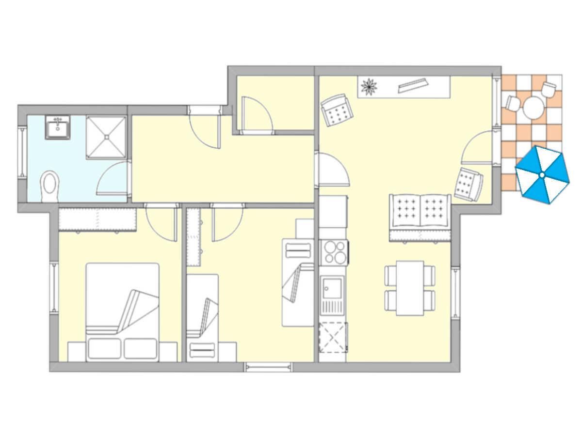 Die Wohnung verfügt über zwei gemütliche Schlafzimmer – eines mit einem komfortablen Doppelbett, das andere mit zwei Einzelbetten. Perfekt, um nach einem Tag an der frischen Meeresluft entspannt zur Ruhe zu kommen.