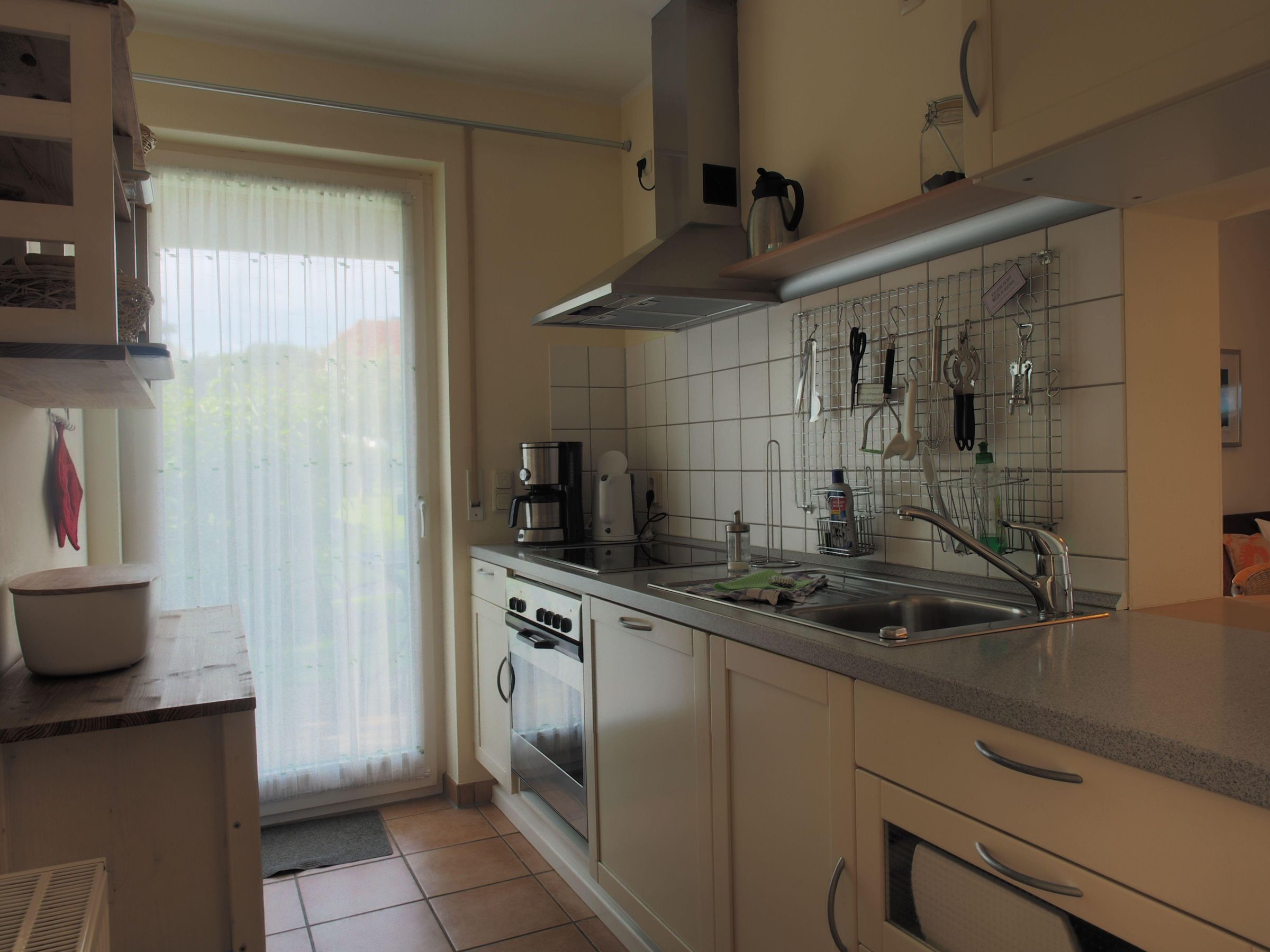 Der helle Wohnbereich empfängt Sie mit einer gemütlichen Sitzecke und TV – ideal für entspannte Abende nach einem erlebnisreichen Tag. Die offen gestaltete, voll ausgestattete Küchenzeile mit Herd, Kaffeemaschine und allem, was man braucht, lädt dazu ein, gemeinsam zu kochen, zu lachen und den Urlaub in vollen Zügen zu genießen.