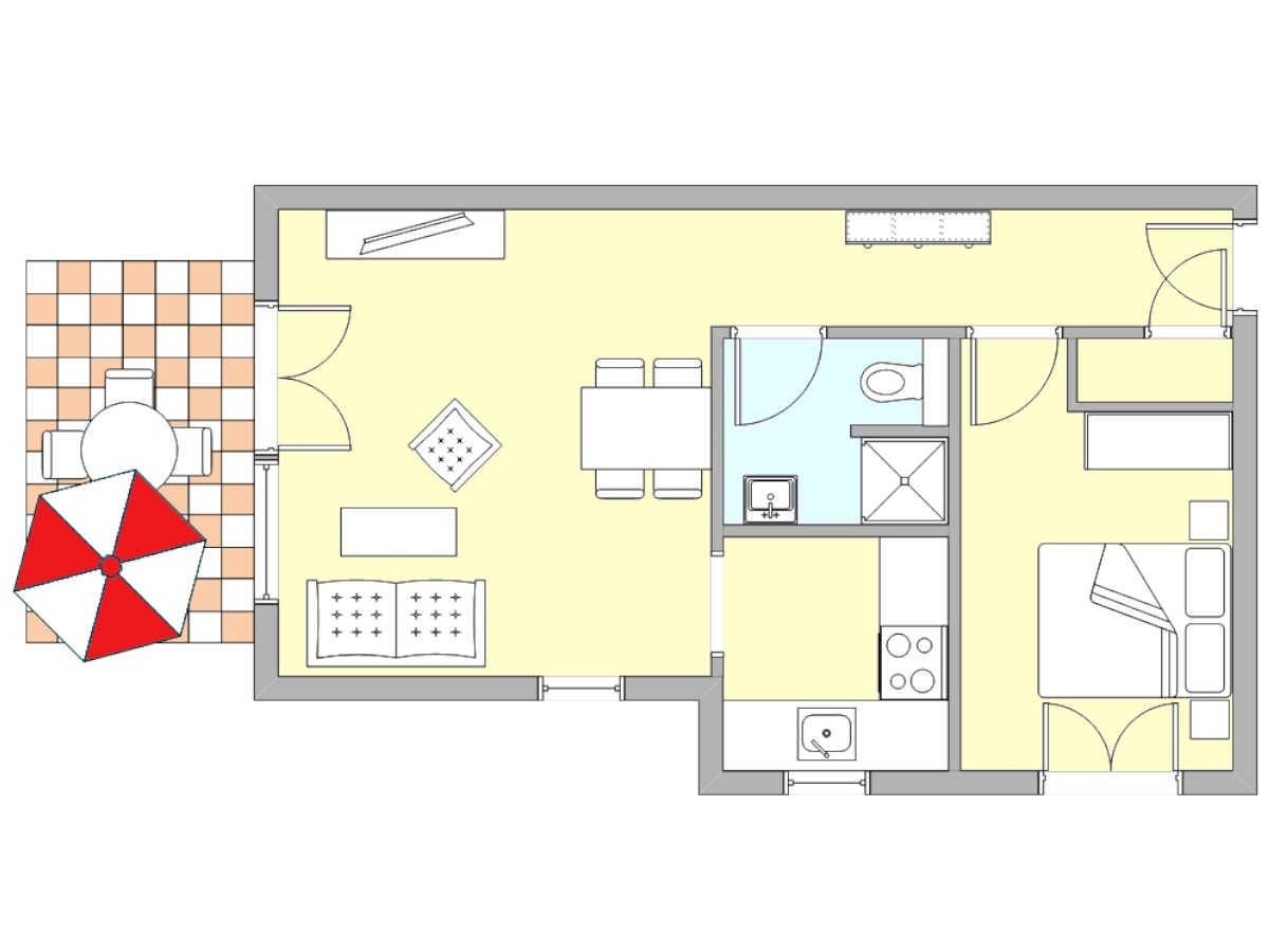 Die Wohnung liegt im Erdgeschoss und verfügt über eine südlich ausgerichtete Terrasse, die zum Frühstück in der Sonne, entspannten Nachmittagen oder einem Glas Wein am Abend einlädt.