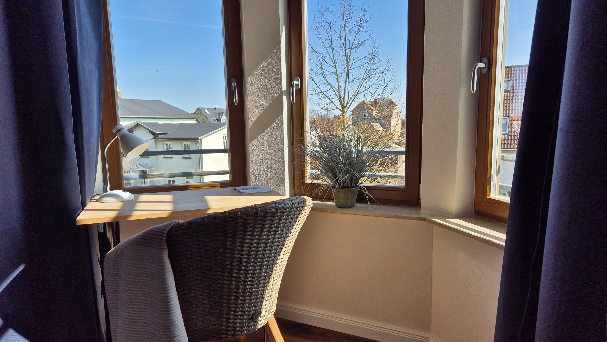 Die Wohnung befindet sich im 1. Obergeschoss des traditionsreichen Hauses „Kaiserliches Postamt“ und überzeugt mit einem hellen, großzügigen Wohnbereich. Hier laden eine gemütliche Sitzecke, ein komfortables Schlafsofa und ein moderner Flachbildfernseher zu entspannten Stunden ein. Der Esstisch bietet Platz für gemeinsame Mahlzeiten und gesellige Abende.