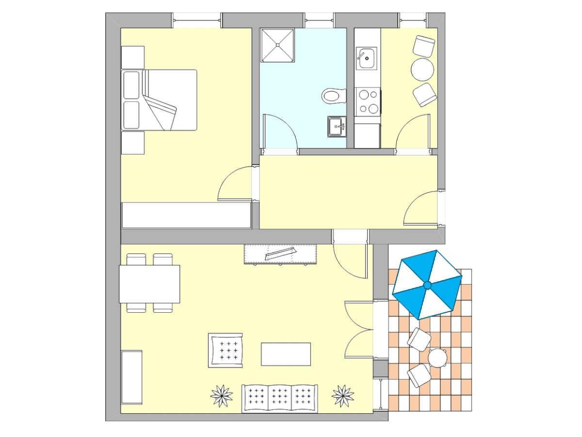 Diese freundlich eingerichtete Ferienwohnung bietet auf 62 m² alles, was Sie für einen entspannten Urlaub mit bis zu drei Personen und Ihrem Hund brauchen.