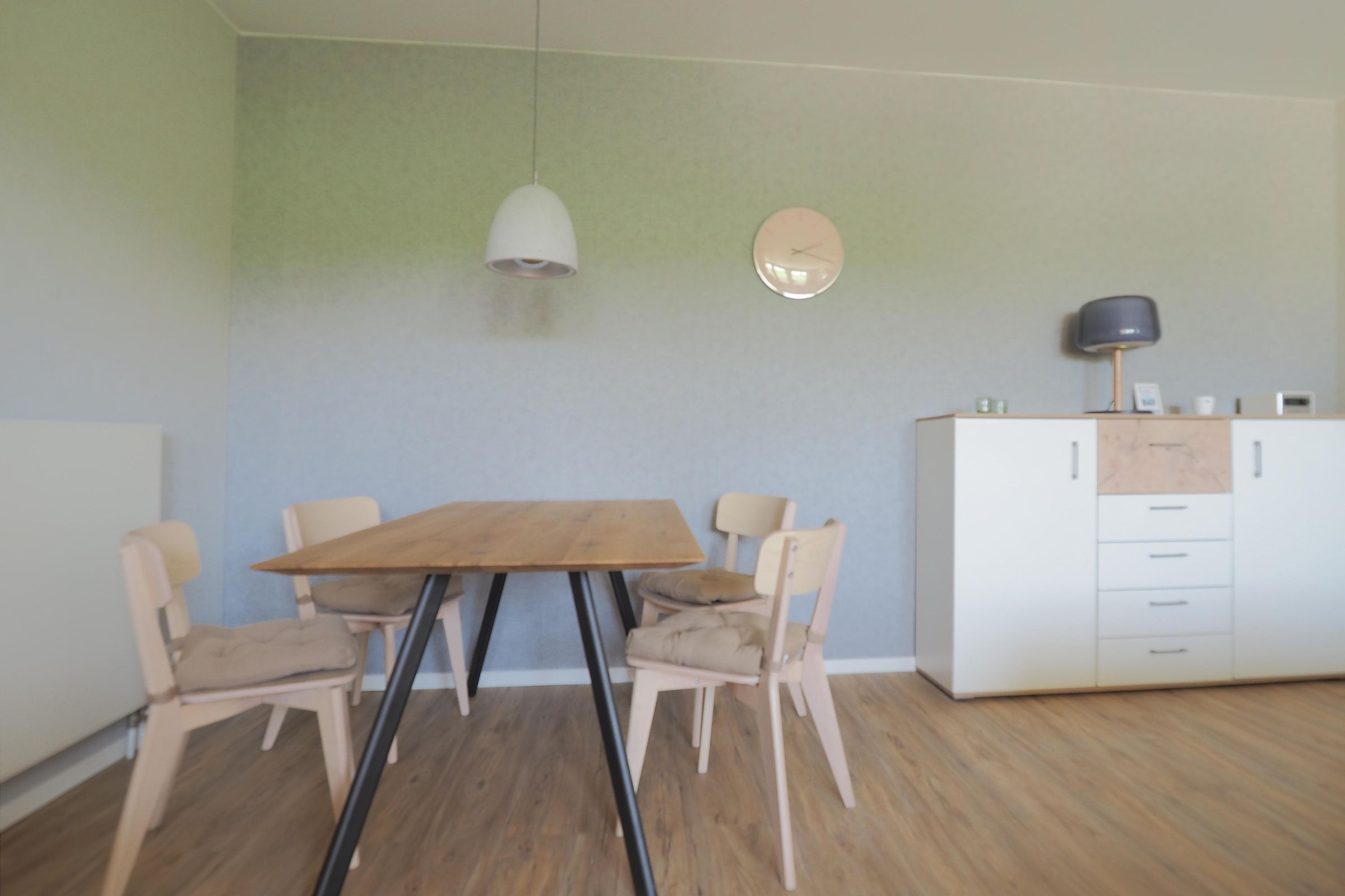 Schon beim Betreten spüren Sie die einladende Atmosphäre: Das lichtdurchflutete, große Wohnzimmer bietet reichlich Platz zum Entspannen. Eine kuschelige Sitzecke, ein moderner TV sowie eine separate Schlafcouch mit Leselampe schaffen perfekte Bedingungen für gemütliche Abende – ob bei einem guten Buch, einem Film oder gemeinsamen Spielen. Der große Essbereich lädt zu geselligen Mahlzeiten und langen Abenden ein.