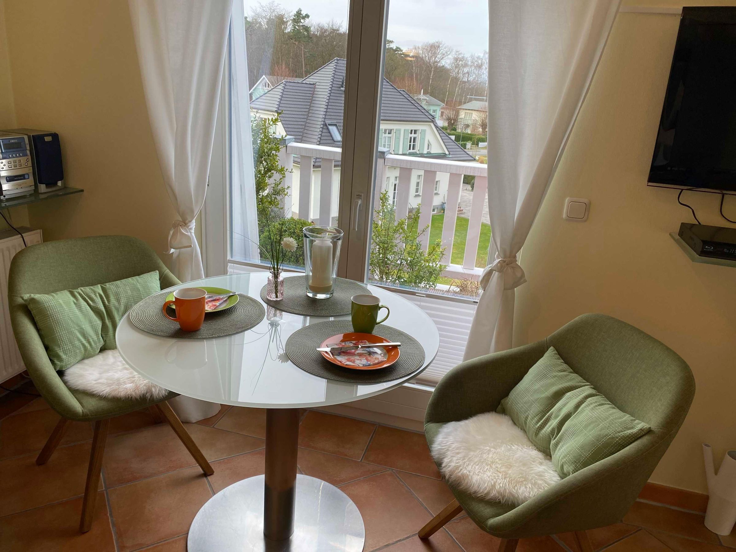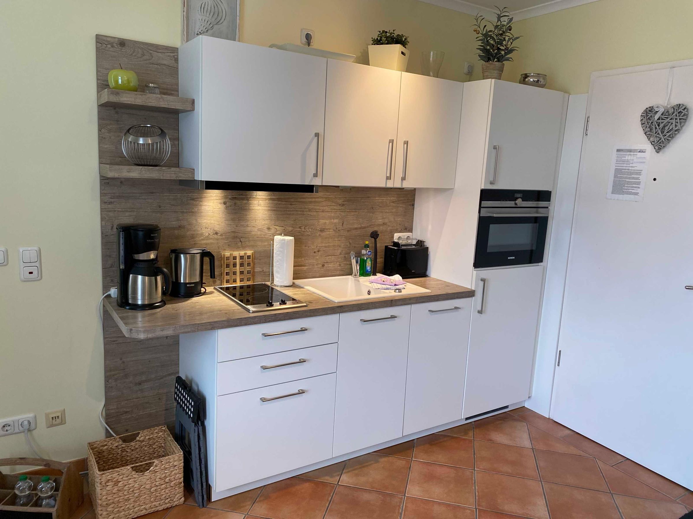 Die gut ausgestattete Kochnische erlaubt flexible Selbstverpflegung, während der Balkon mit Gartenmöbeln zum Verweilen an der frischen Luft einlädt.
